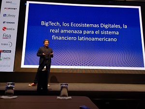 Citó por ejemplo que Tesla ofrecerá un seguro para los autos, ya que sabe el comportamiento de los usuarios. Otro caso sucede en China, donde varias compañías han desarrollado el wichat que ofrece mensajería, Instagram, billetera móvil, taxi, Tinder y otros servicios digitales financieros. “No tengo que salir de esta aplicación y además permite conectar a los servicios de terceros, que es el desafío de la industria financiera de crear de poder conectarse con los dispositivos de las personas”.