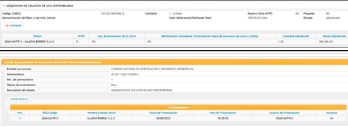 A pesar de la serie de irregularidades mostradas con la debida anticipación al responsable del proceso, Mayor General José García Morgan, en la adjudicación tecnológica de CONIDA, ganó el que nuestras fuentes nos anticiparon, su proveedor de UPS, Illapay Energy donde sus funcionarios se reunieron con gente de la FAP para elaborar los TDR´s. La cereza del pastel: En la recta final y a pesar de que se presentaron tres postores sólo publicaron la oferta de uno, haciendo creer en la modalidad de postor único. De no creerlo.