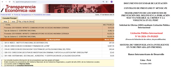 (americasistemas.com.pe. Lima, Perú – 12 de febrero 2025) Una revisión exhaustiva de los procesos de licitación en el sector tecnológico de la Policía Nacional del Perú (PNP) arroja datos inquietantes. La empresa INFINITE COMMUNICATIONS, vinculada a Silva Montejo y representante de las soluciones IREX, ha acumulado una serie de adjudicaciones que no solo llaman la atención por su volumen específico al MININTER, sino por la falta de competencia real y las condiciones ventajosas con las que se ha beneficiado en contratos públicos.