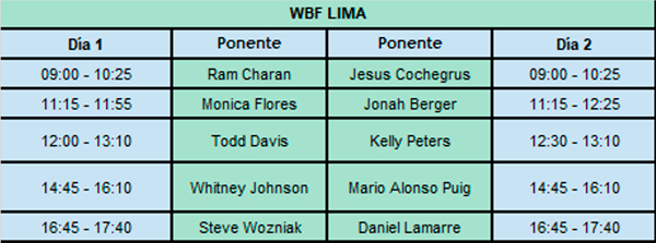 Más información del World Business Forum en https://www.wobi.com/wbf-lima/