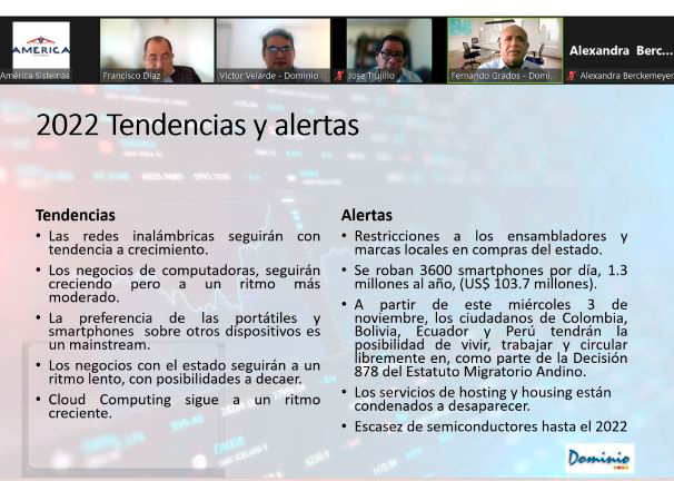 A su turno, Víctor Velarde, analista principal de Dominio Consultores, aseguró que las ventas de computadoras (2021) por tipo en unidades será de 46 % (portátiles), 35 % (tabletas) y 19 % (computadoras de escritorio).