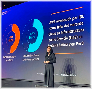 En este sentido, IDC reconoce a AWS como líder del mercado Cloud en Infraestructura como Servicio (IaaS) en América Latina (56,7%) y en Perú (49,2%). Frente a esto la country manager de AWS en Perú, Karla Wong manifestó que «en el país, la transformación digital avanza y AWS se consolida como un aliado estratégico al impulsar la innovación y la adopción tecnológica en empresas e instituciones. Nuestro compromiso a largo plazo es generar un impacto positivo en la sociedad, considerando la nube como una fuerza impulsora de progreso y prosperidad. Además del impacto directo en inversión y empleos, debemos considerar el efecto en la productividad empresarial, las cadenas de valor y el consumo en general. »