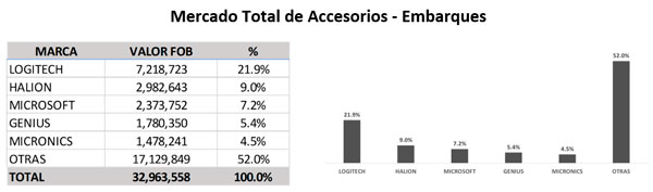 (americasistemas.com.pe. Lima, Perú – 10 de febrero 2021) Al cierre de ese año, el nivel transado en valor FOB por los embarques de dispositivos alcanzó la suma de 33 millones. También observamos que son las marcas Logitech, Halion y Microsoft las que se disputan el mercado en varias categorías.