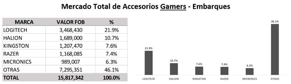 Durante el año 2020 el mercado de computadoras, en ventas, creció en ese período en 13.1% en términos de dólares. Así mismo el subsegmento de PC Gamers creció en 40% en términos de unidades. Esto incluye computadoras de escritorio y portátiles importadas y así como ensambladas. Eso nos ha llevado a iniciar un análisis de los embarques de accesorios del año 2020, ya que observamos que debe de desarrollarse a ritmo del crecimiento de los dispositivos.