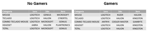Luego hemos hecho un análisis por categorías de Accesorios No Gamers y Gamers teniendo los siguientes resultados: