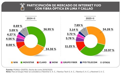 (americasistemas.com.pe. Lima, Perú – 10 de setiembre 2025) WIN, marcó un hito en el sector telecomunicaciones al convertirse en el operador con mayor participación de mercado de internet fijo con fibra óptica en Lima y Callao, de acuerdo con el último reporte del Organismo Supervisor de Inversión Privada en Telecomunicaciones (OSIPTEL).