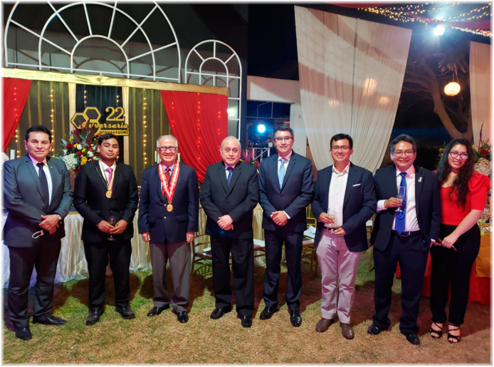 Culminando la ceremonia, se brindó también un importante reconocimiento a la Srta. Lisset Salvo García, quien, como directora del Proyecto para la celebración de los 22 años, en los hechos se lució al haber liderado un importante equipo que materializó brillantemente la ceremonia y celebración, recibiendo la felicitación de todos los presentes y en especial de las personalidades invitadas.