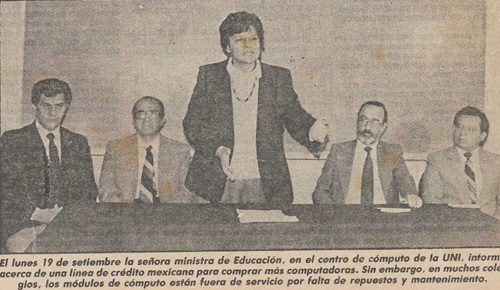 Columna que resalta sentimientos dedicada a resaltar a personalidades que, a pesar del paso del tiempo, han y siguen dejado una huella imborrable en nuestra querida tierra peruana. Los invitamos a imaginar los nombres de estas destacadas figuras mientras juntos exploramos sus fascinantes historias. Foto de 1987 durante el gobierno aprista se debatía la falencia de computadoras en los colegios nacionales.